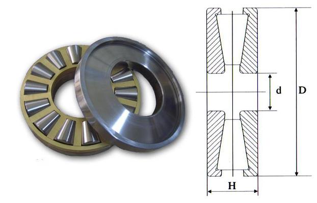 Doubel-direction thrust tapered roller bearings is separable bearing, can install washer, bearing seat, cage, and roller components, can take tremendous double-direction axial load. But it can not limit the axis’s radial displacement. This type of bearing equips with taper rollers, rollers are guided by raised edge. To make axis and seat ring groove surface of the tapered roller and rolling bearing the vertex at the center line when the design. This type of bearing’s washer and roller neck, are using clearance fit, and must therefore be adopted clearance fit with radial shaft sleeves, etc. To compare this type of bearings with other types of axial orientation bearings (single and double Angle contact ball bearing, double row large taper Angle roller bearing), it has the narrowest width and smallest outer under same axial load conditions.